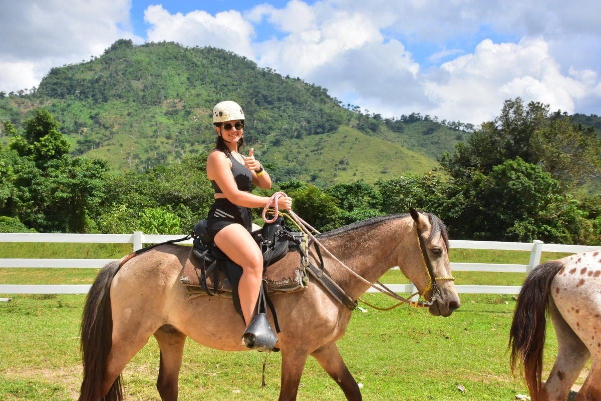 Recorre la selva con nuestras tirolinas más largas y seguras del país, de dos kilómetros de longitud, alcanza una velocidad de hasta 70 km/h y termina con un salto de caída libre. Conduce nuestros buggies por nuestro circuito privado de caminos extremos y nada en nuestro río natural de agua cristalina. Cabalga a través de la jungla con nuestros caballos en semi-libertad, tranquilos y ágiles para que puedas disfrutar de la fauna salvaje, súbete al único teleférico de la República Dominicana que te brindará las mejores vistas del parque y, finalmente, conoce la cultura del país con nuestro safari en el que conocerás la cultura dominicana y local y degustarás comida tradicional en nuestro buffet que no podrás disfrutar en ningún hotel. Ofrecemos un club infantil para los más pequeños, con un montón de actividades mientras esperan a los mayores. También tenemos la opción VIP, que incluye transporte personal, un guía y fotógrafo privado, bebidas ilimitadas, un álbum digital, una tirolina adicional y ¡mucho más!
